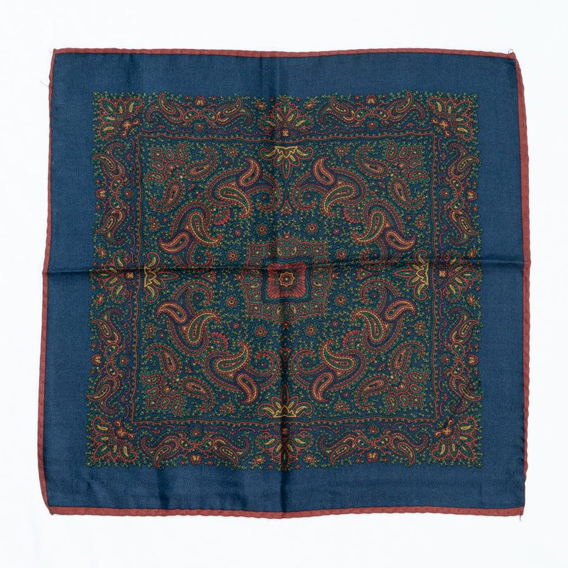 Multi Paisley Printed Blue Silk Twill Pocket Handkerchief