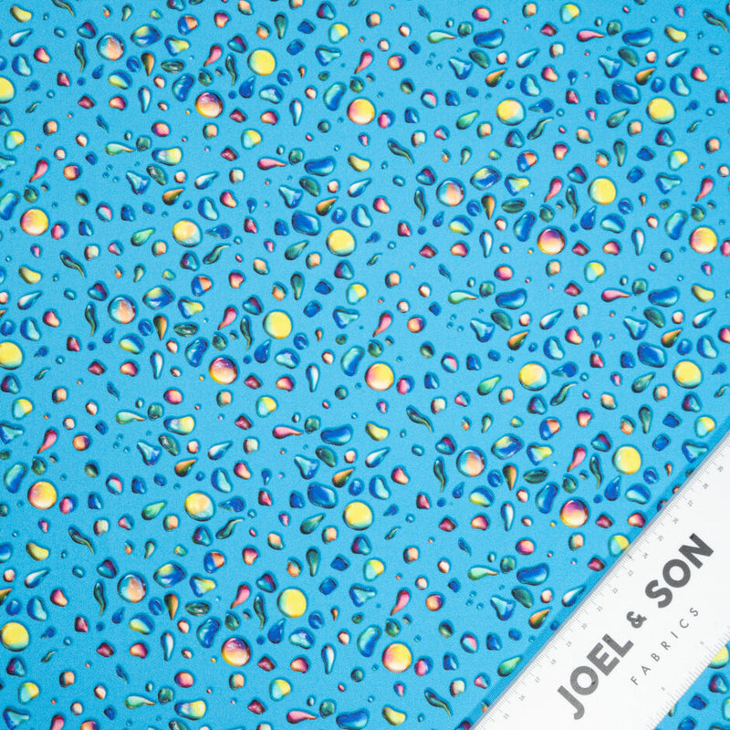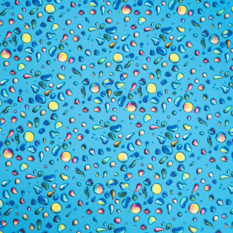 Multi-Coloured Water Droplets Printed Blue Silk Twill