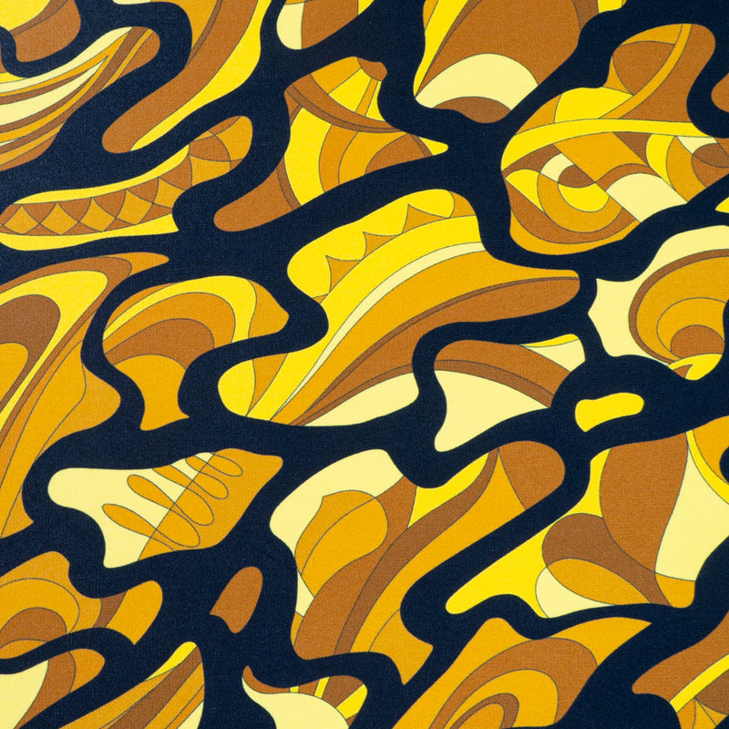 Mustard Yellow & Black Abstract Printed Silk Blend Jersey