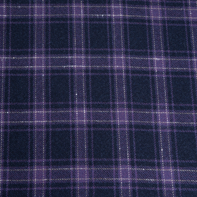 Navy Blue & Lavender Checkered Wool & Cashmere Suiting