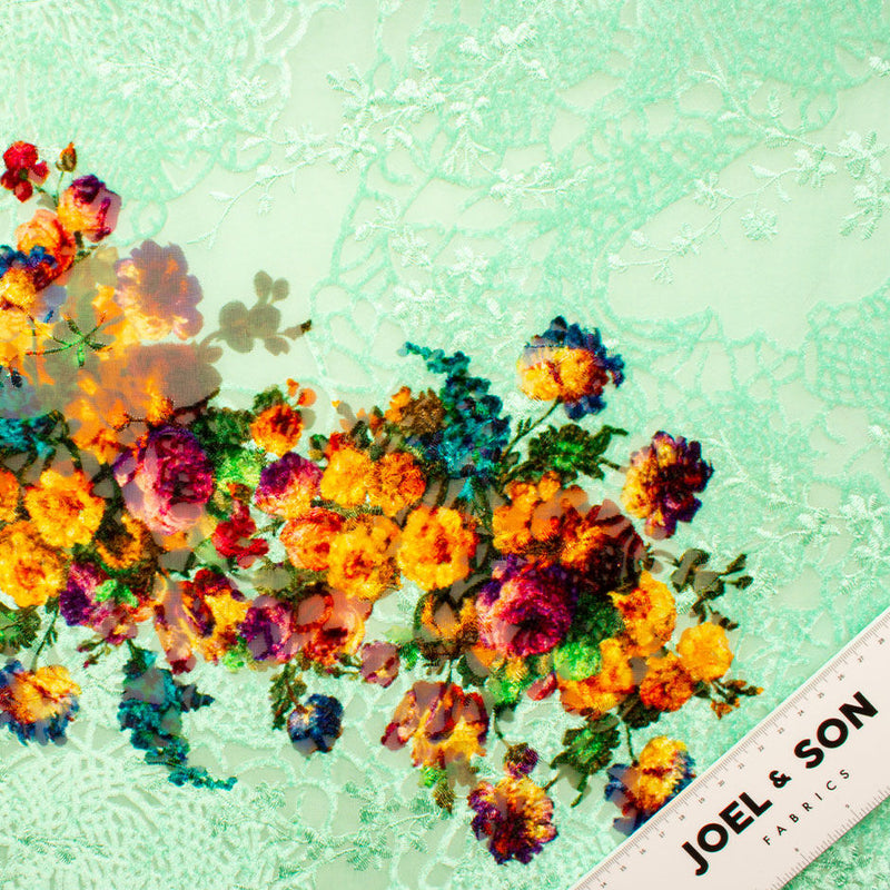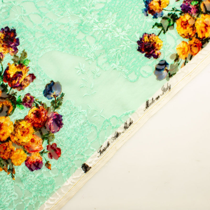 Orange Floral Mint Embroidered Green Devoré Velvet