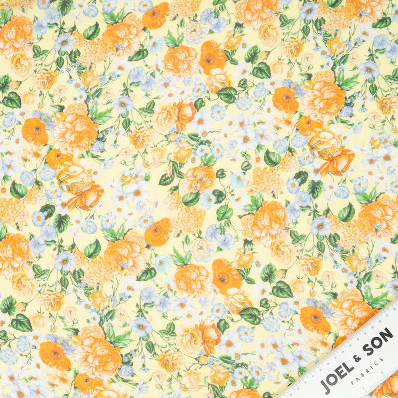 Orange Floral Printed Yellow Pure Silk Chiffon