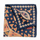 Orange Patterned Blue Pure Silk Pocket Handkerchief