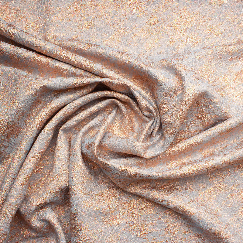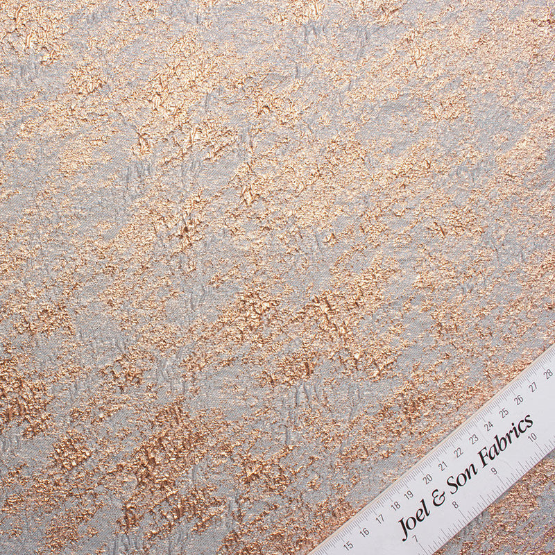 A pretty pink metallic on a baby blue cloqué fabric. Understated yet sophisticated, this pliable fabric tailors especially well for a flattering slightly loose-fit dress with a ruffled hem or short jacket that emphasizes the waist. Team this up with a plain silk crêpe to create an eye-catching outfit for a special occasion. Available in a variety of colours.