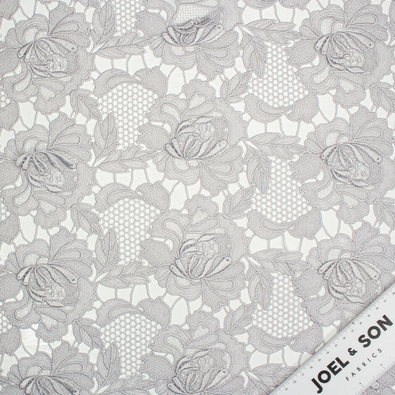 Pale Grey 3D Floral Embroidered Guipure Lace