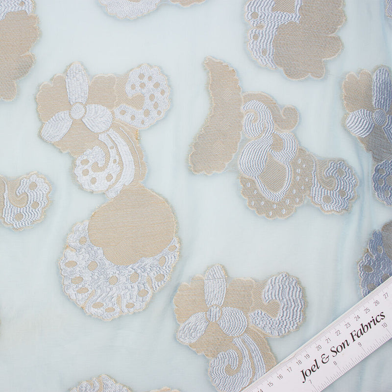 Pastel Blue/Gold Metallic Silk Chiffon (A 1.50m Piece)