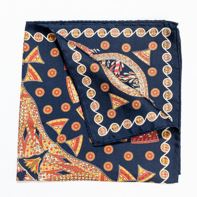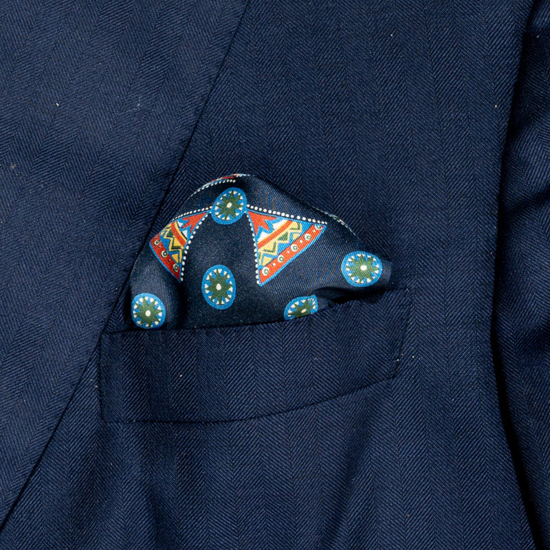 Patterned Dark Blue Pure Silk Pocket Handkerchief