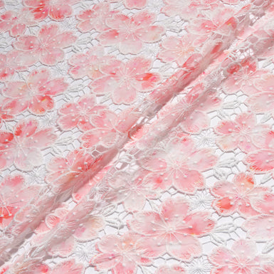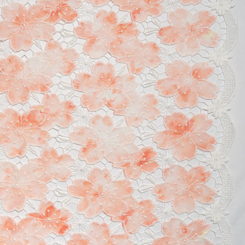 Peach Floral Printed Embroidered Microfibre
