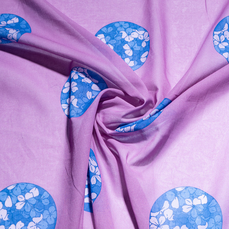 Blue Floral Printed Deep Pink Pure Cotton Voile