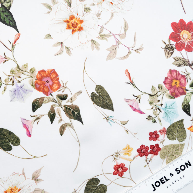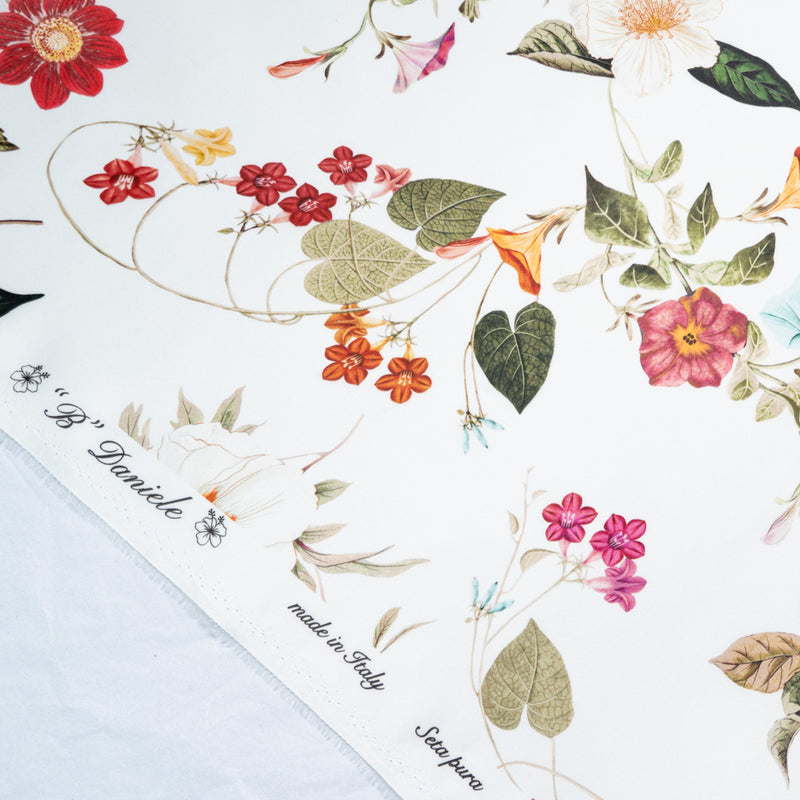 Pink Floral Printed Ivory Double Silk Organza