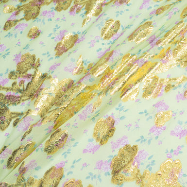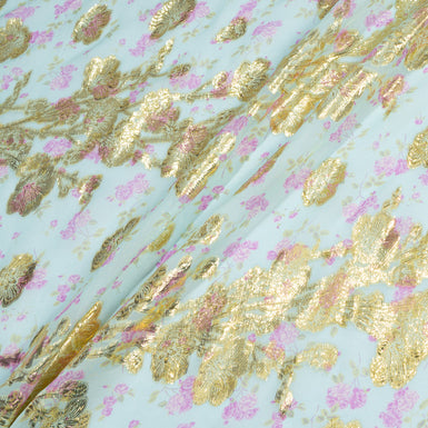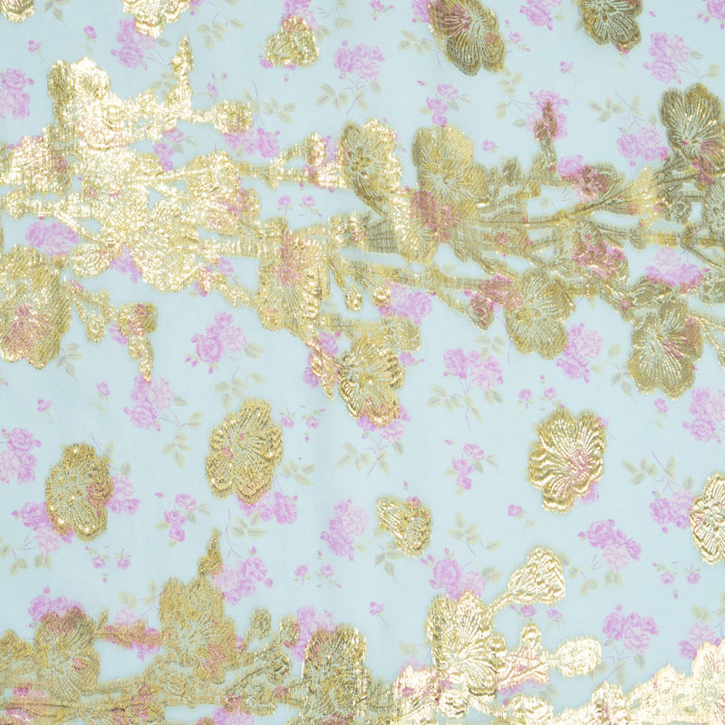 Pink Floral Printed Soft Blue Metallic Chiffon