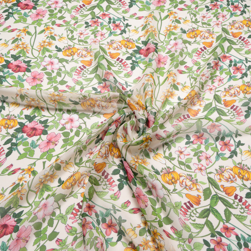 Pink & Yellow Floral Printed Pure Silk Chiffon