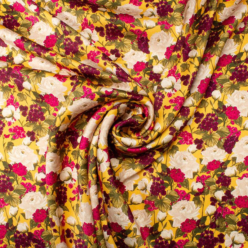 Pink & Ivory Floral Printed Double Silk Satin Crêpe