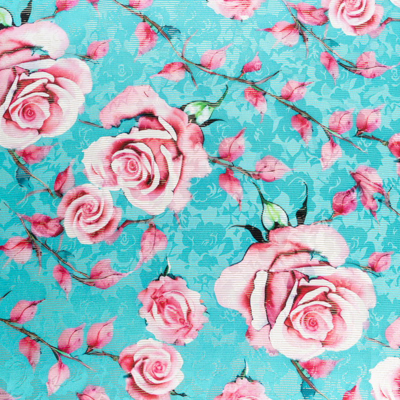 Pink Rose Printed Turquoise Printed Silk Striped Lamé