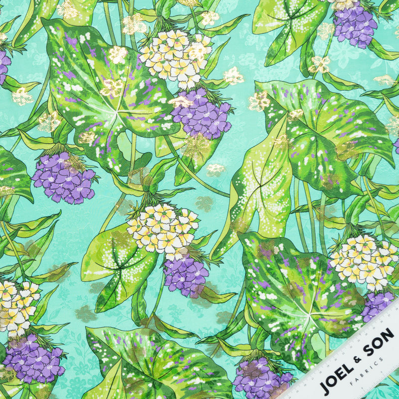 Purple Floral Printed Aqua Silk Metallic Jacquard