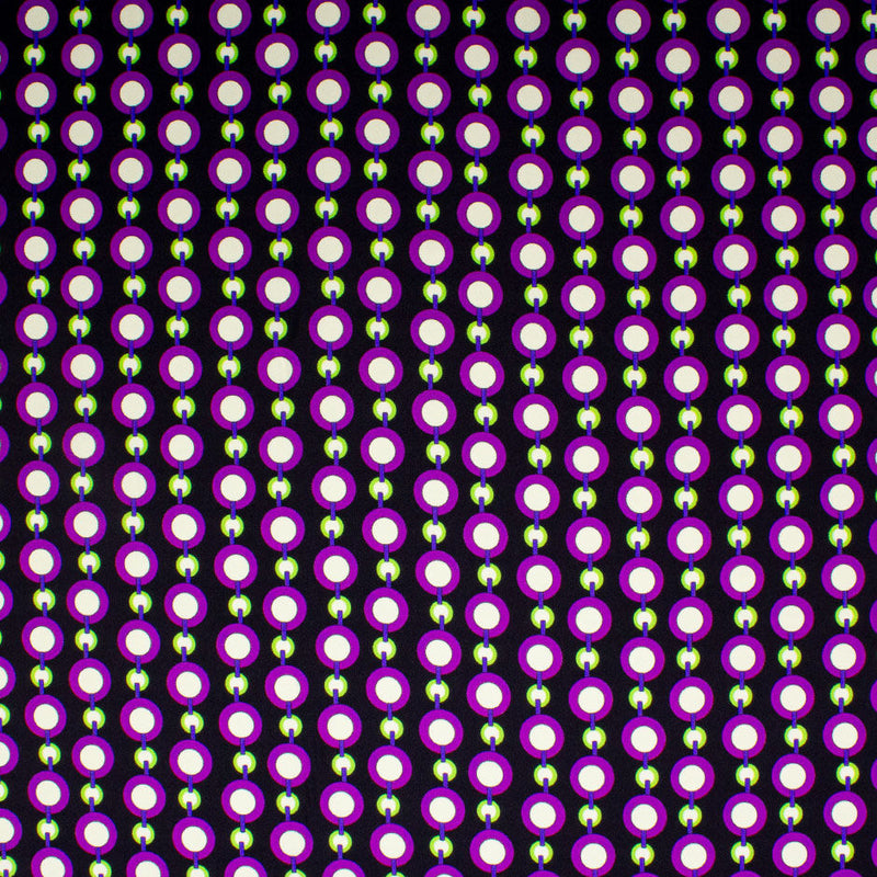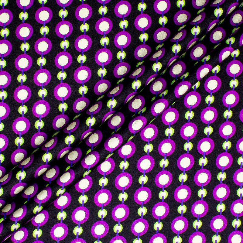Purple & Green Link Printed Black Silk Twill (A 2m Piece)