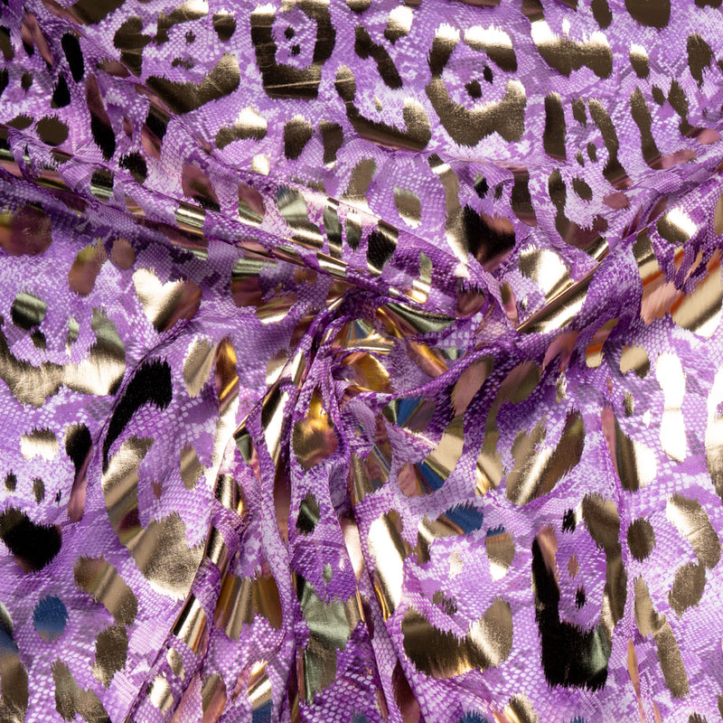 Rich Purple Snake Printed Laminated Silk Georgette
