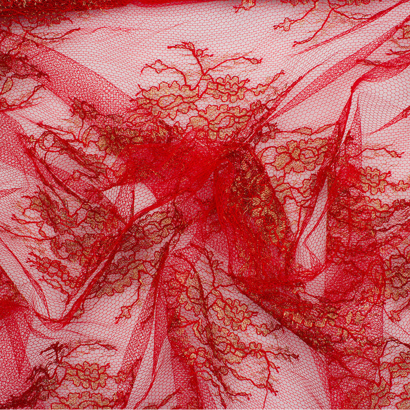 Red/Gold Metallic Chantilly Lace (A 1.60m Piece)