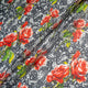 Red Rose & Black Lace Printed Pure Silk Georgette