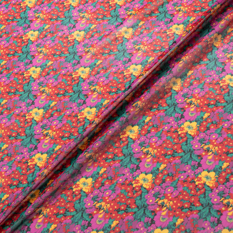 Red, Yellow & Pink Floral Printed Silk Georgette