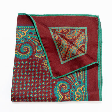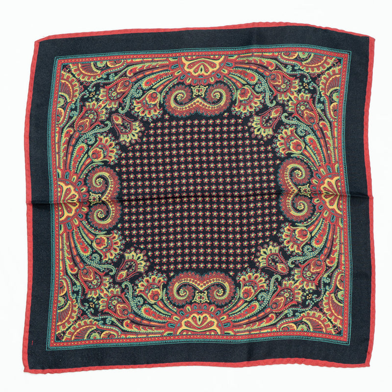 Red & Yellow Printed Midnight Blue Silk Twill Pocket Handkerchief