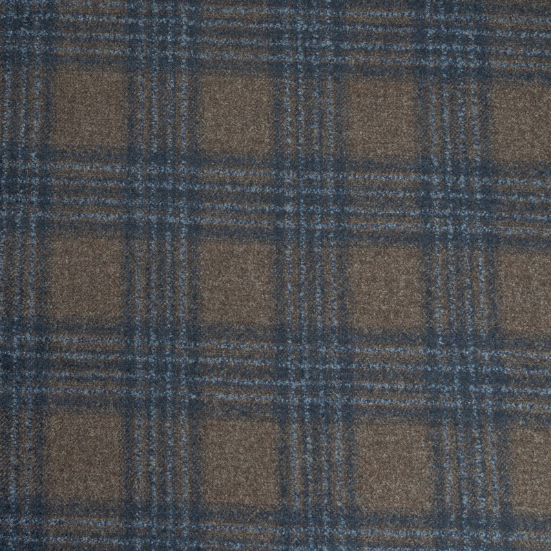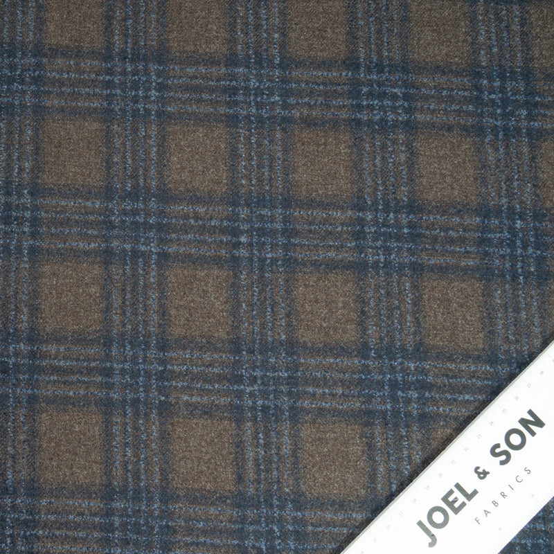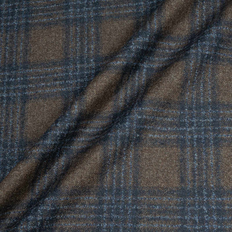 Rich Brown & Navy Blue Checkered Wool, Silk & Cashmere Suiting