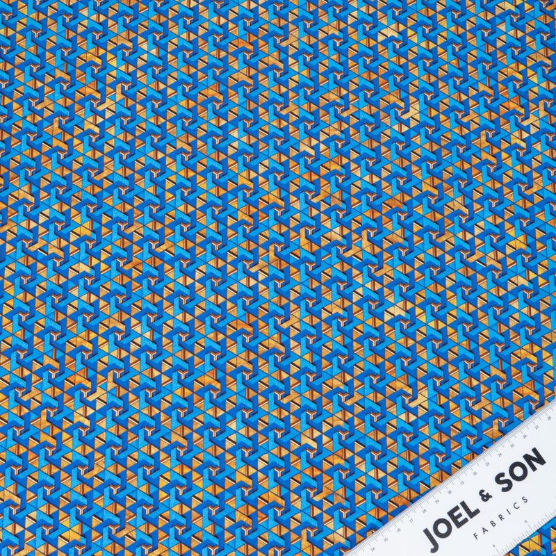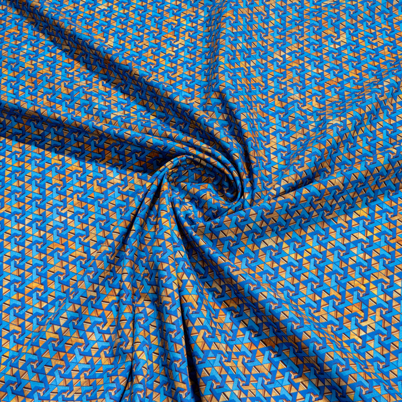 Royal Blue & Brown Geo Printed Superfine Cotton