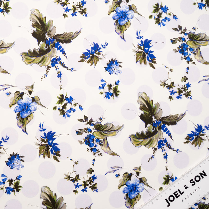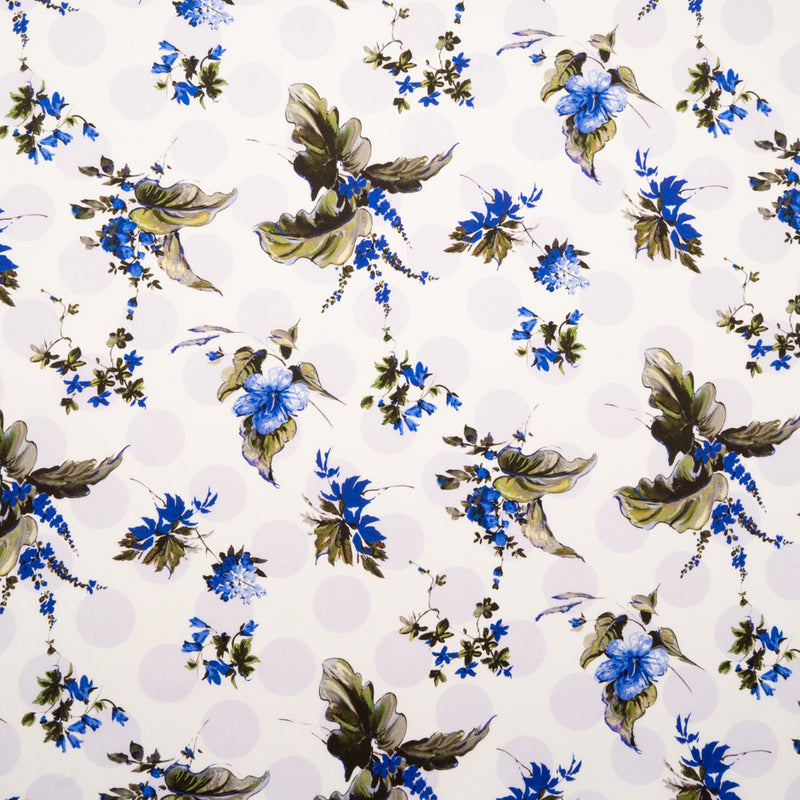 Royal Blue Floral Printed Ivory Luxury Cotton