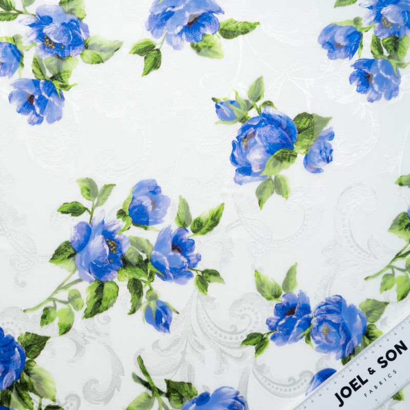 Royal Blue Floral Printed Silk Fil Coupé Georgette