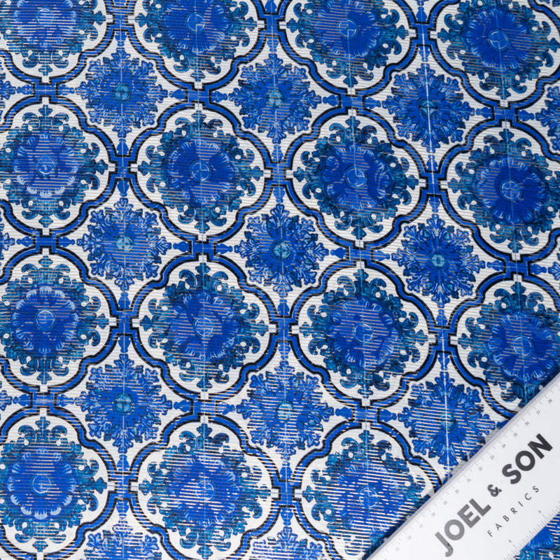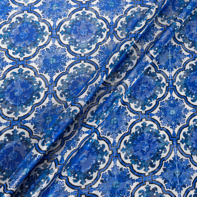 Royal Blue Geometric Printed Lamé Stripped Silk