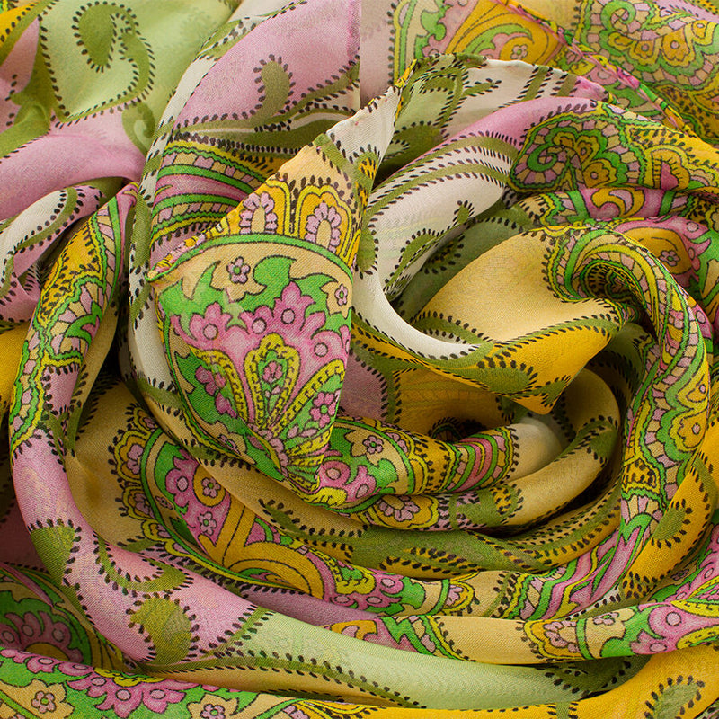 Pink & Green Paisley Printed Silk Scarf