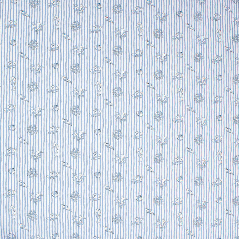 Sea Creatures Printed Blue Striped Pure Cotton