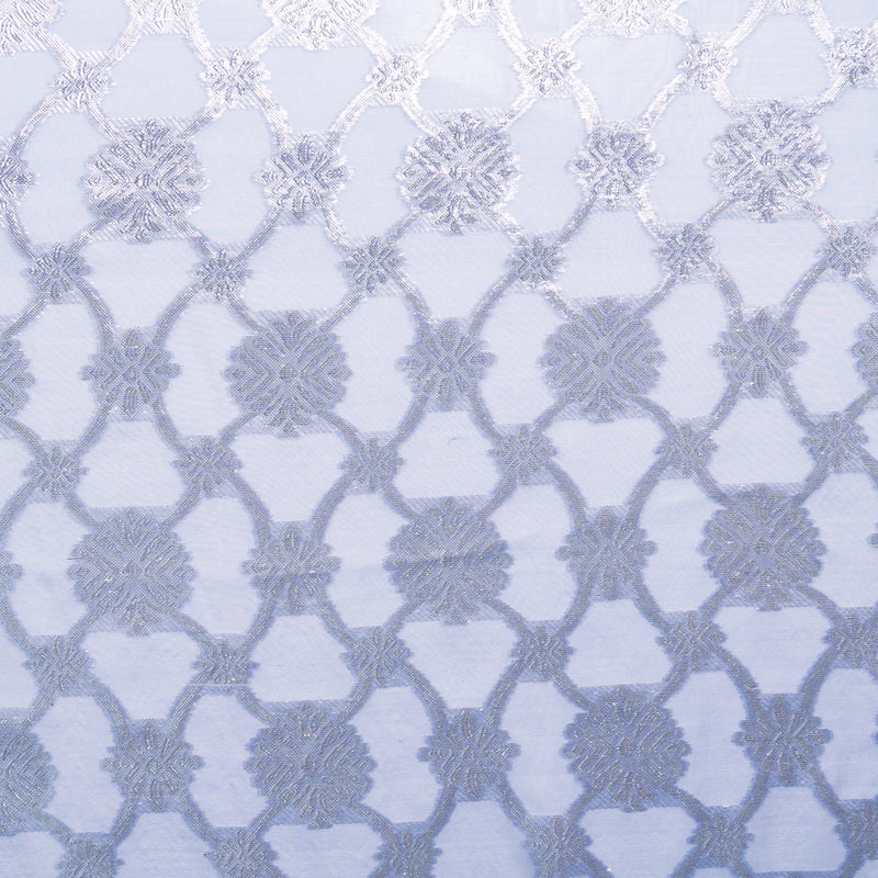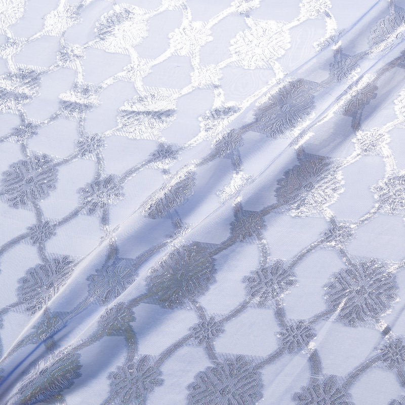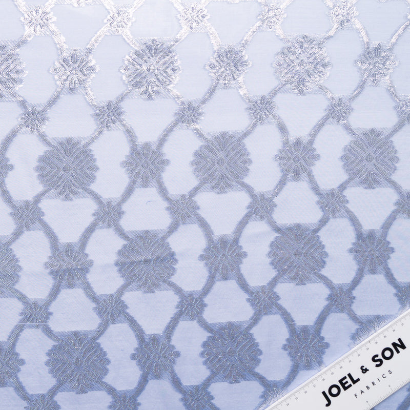Silver Metallic Jacquard Blue Silk Chiffon