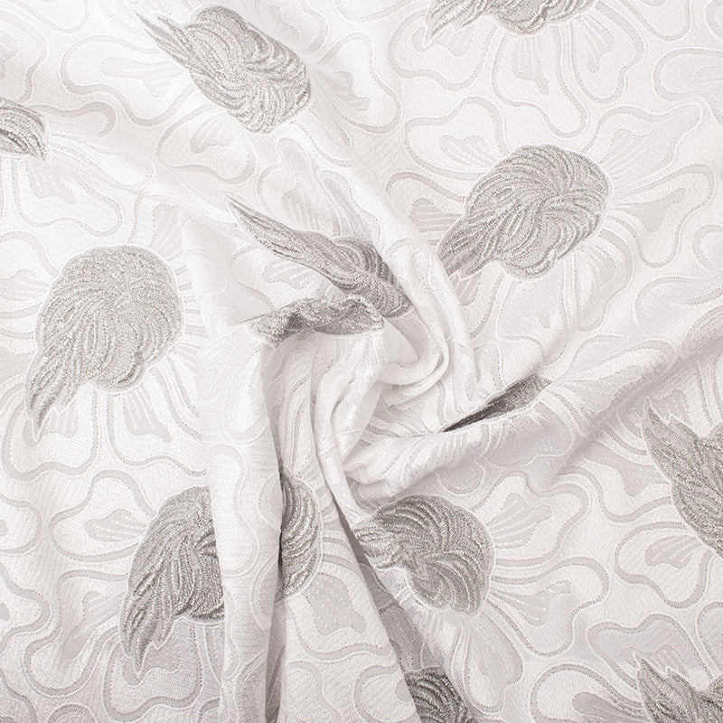 Silver Metallic Leaf Embroidered White Cotton