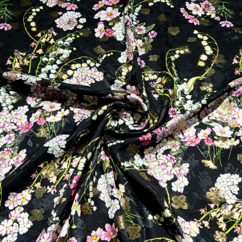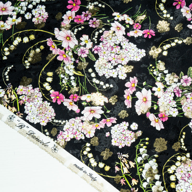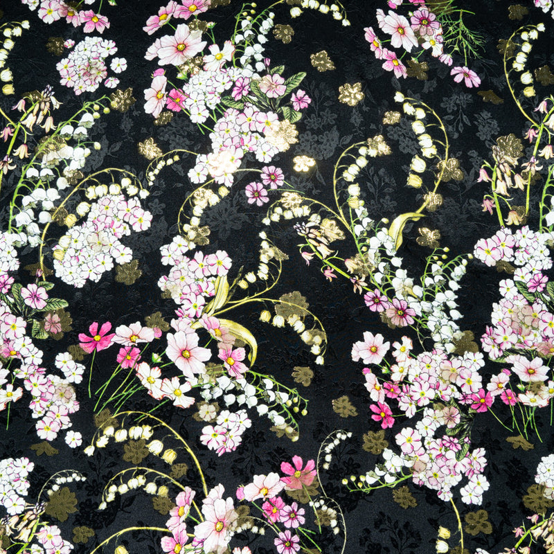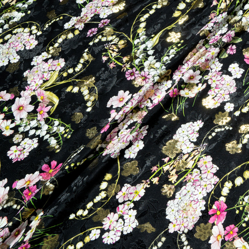 Snowdrop Printed Black Metallic Silk Jacquard (A 2m Piece)