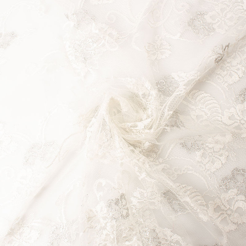 Soft Ivory Silver Metallic Chantilly Lace