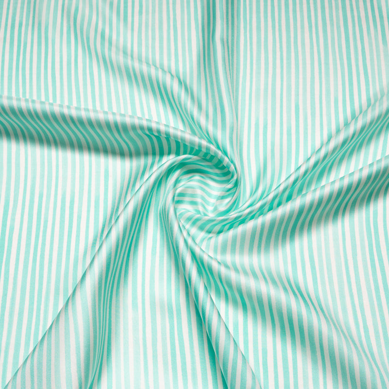 Ice Blue & White Striped Pure Silk Twill