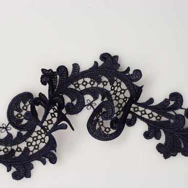 A deep purple guipure trim. The stunning detail makes it perfect for eveningwear or to be used as an appliqué. Milliners have even bought these types of trimming for creating gorgeous hats. Available in a variety of colours and patterns.