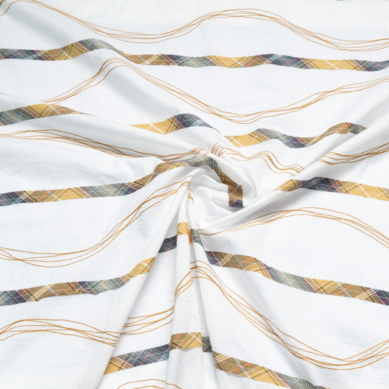 Tartan Embroidered White Cotton