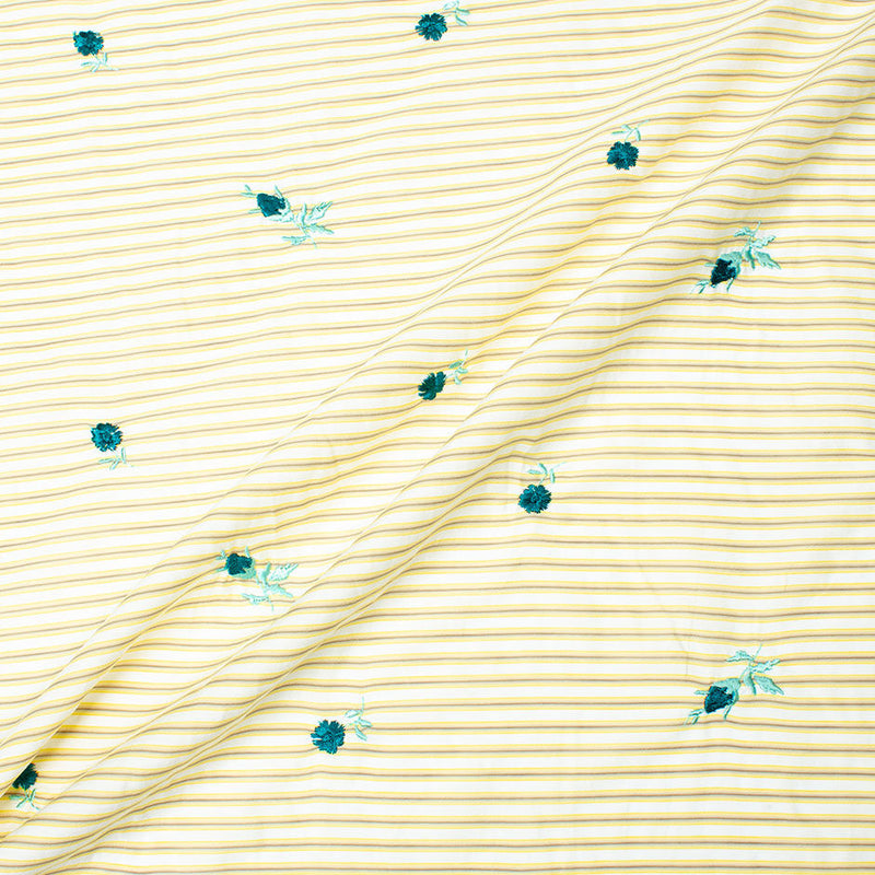 Teal Floral Embroidered Yellow & Grey Striped Cotton