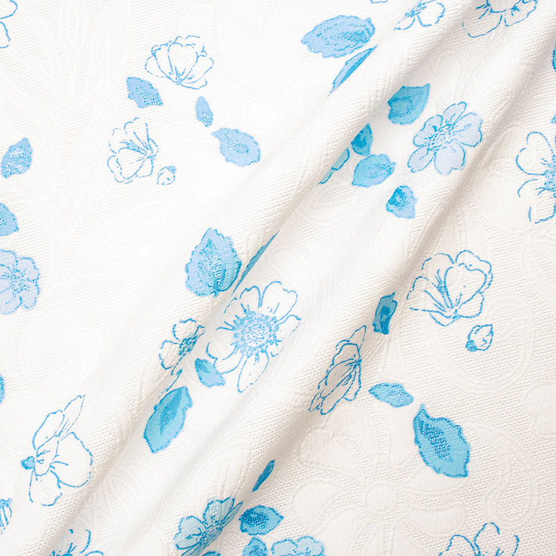 More crease resistant than cotton, this turquoise floral printed ivory microfibre piqué is perfect for a summer wedding guest or simply a top to throw on with jeans.