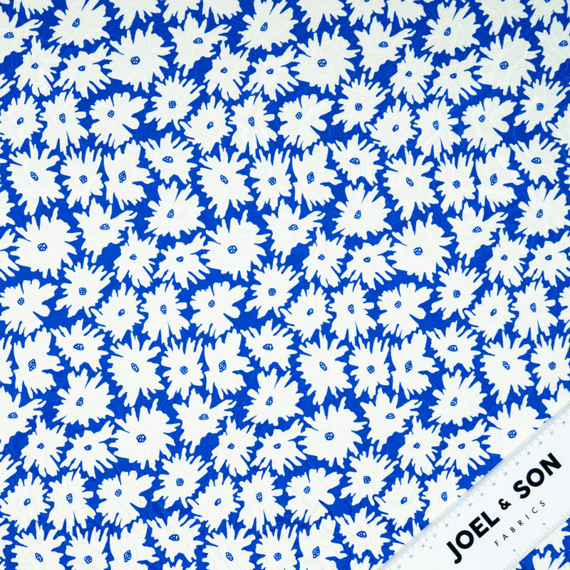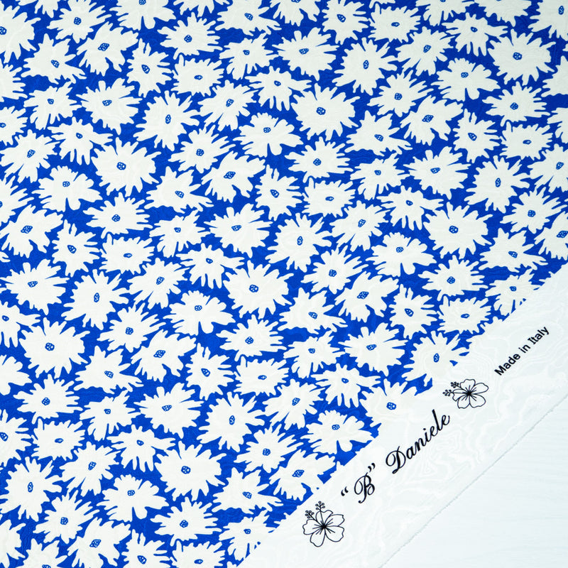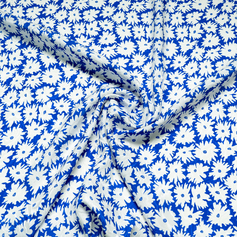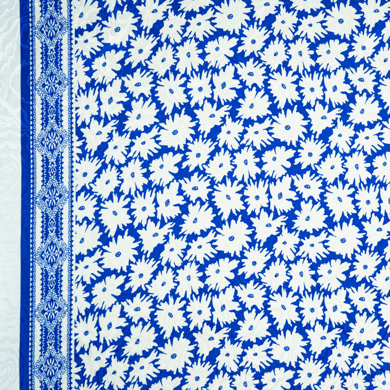 White Floral Printed Royal Blue Pure Silk Jacquard