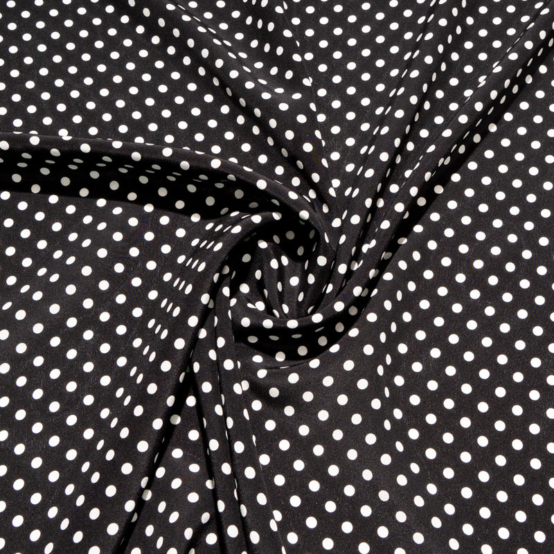 White Geo Spot Printed Black Silk Crêpe de Chine