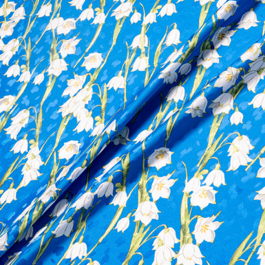 White Snow Drop Printed Rich Blue Silk Jacquard