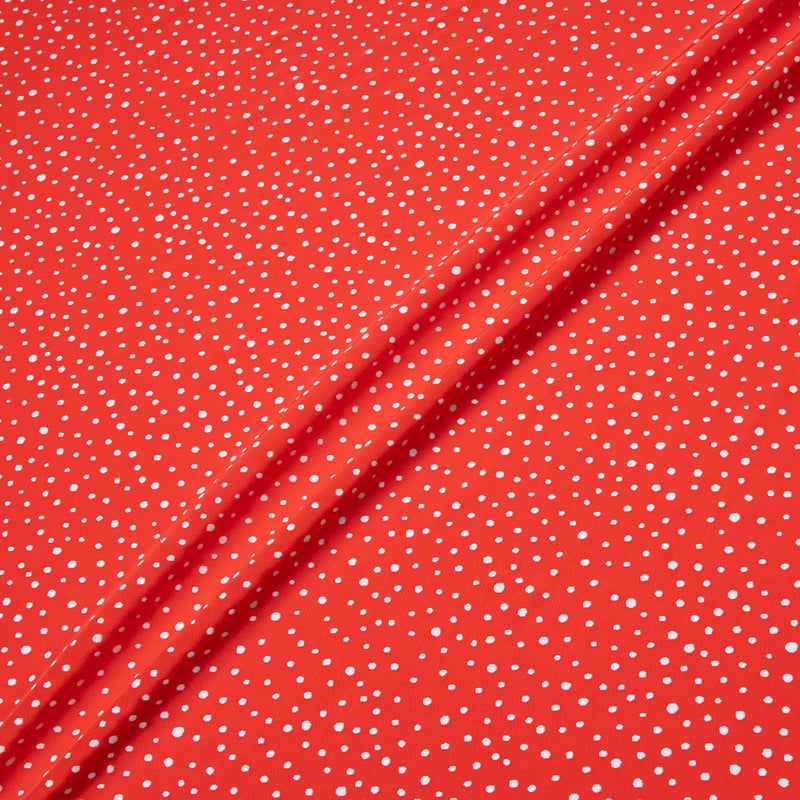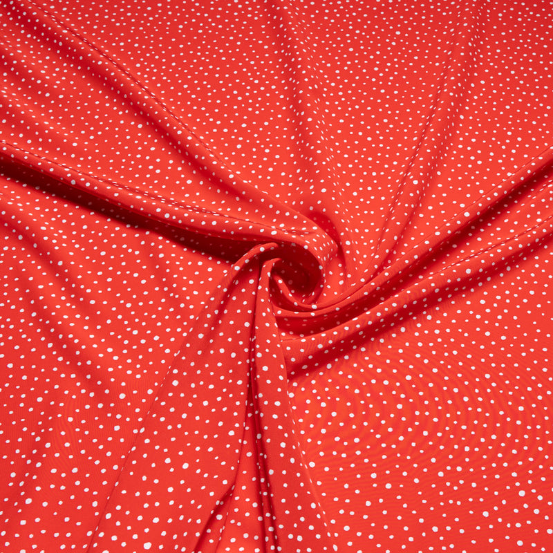 White Spot Printed Rich Red Silk Crêpe de Chine