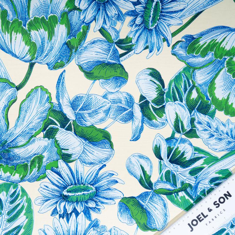 Blue & Green Floral Printed Soft Finish Duchess Satin