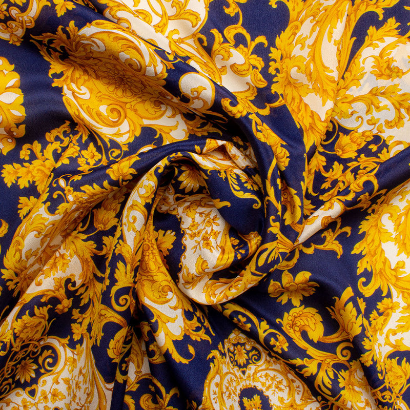 Yellow Baroque Printed Silk Crêpe de Chine Fabric