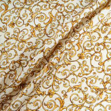 Golden Yellow 'Fleur de Lis' Cotton & Silk Blend Cloqué