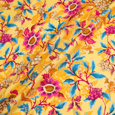 Deep Yellow Floral Printed Navy Blue Wool & Cotton Blend