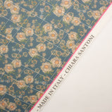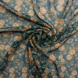 Saffron Floral Printed Teal Green Pure Silk Georgette